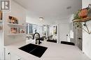 City living at its finest! This 1-bedroom plus den corner suite delivers the best in urban living with one of the most functional layouts in the building. Floor-to-ceiling windows flood the space with natural light and offer unobstructed views of the CN Tower and Lake Ontario especially from the bedroom, where you'll wake up to serene water views. Inside, the suite has been thoughtfully upgraded. The kitchen boasts brand-new granite countertops with an extended overhang for barstools, a deep black sink, and upgraded fridge, stove, and dishwasher. A large wall mirror in the living area expands the sense of space. The bathroom has been updated with matching granite, a large custom mirror, and a sleek walk-in glass shower. The unit features all-new lighting, replacing standard fixtures with stylish, modern ones some with dimmable features for added ambiance. Cupboards have been painted and refreshed, closet doors in the bedroom replaced, and all door handles updated to complete the clean, modern aesthetic. Enjoy access to top-tier building amenities: a fully equipped gym, indoor pool, 24-hour concierge, party room, rooftop BBQ area, basketball court, visitor parking, and more. Located in the heart of downtown, just steps from the waterfront and Toronto Music Garden, and within walking distance to The Well, Rogers Centre, and King West. Easy access to the Gardiner, Spadina streetcar, and Union Station makes commuting a breeze. Sobeys is directly downstairs, and Canoe Landing Park with green space and dog parks is just around the corner. This is your chance to live in one of Toronto's most vibrant and convenient communities. Don't miss it! Photo of the den has been virtually staged. (id:27)